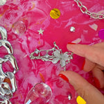 We're obsessed with the liquid metal style of this barrette! It features a crystal butterfly with gems and adds an edgy touch to any look. Attached with a silver alligator-style clip - it's perfect for a partial updo or holding up a few locks of hair for effortless style!