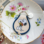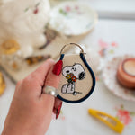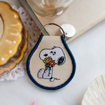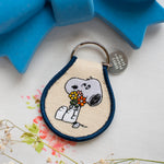Always remember to stop and smell the flowers with this adorable embroidered snoopy keychain!