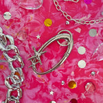 This silver oval-shaped carabiner is adorned with two cute little sparkles - the perfect accessory for your keys, water bottle, bag, etc! Also comes with a keyring attachment.
