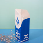 The milk carton design is soooo cute! Perfect for fresh or dried flowers! Adds a pretty pop of blue and white that can go with many different decor styles.
