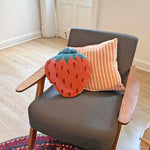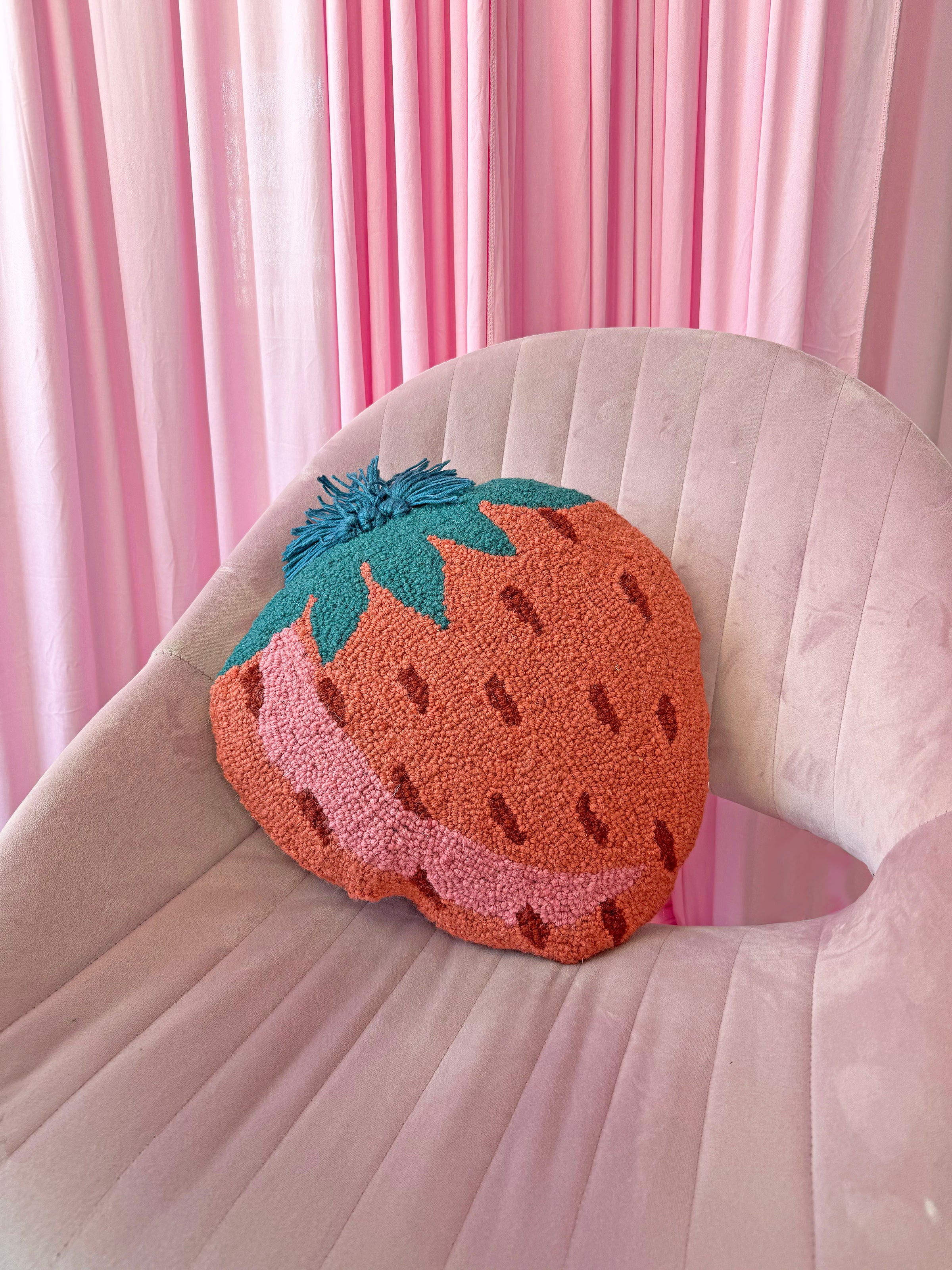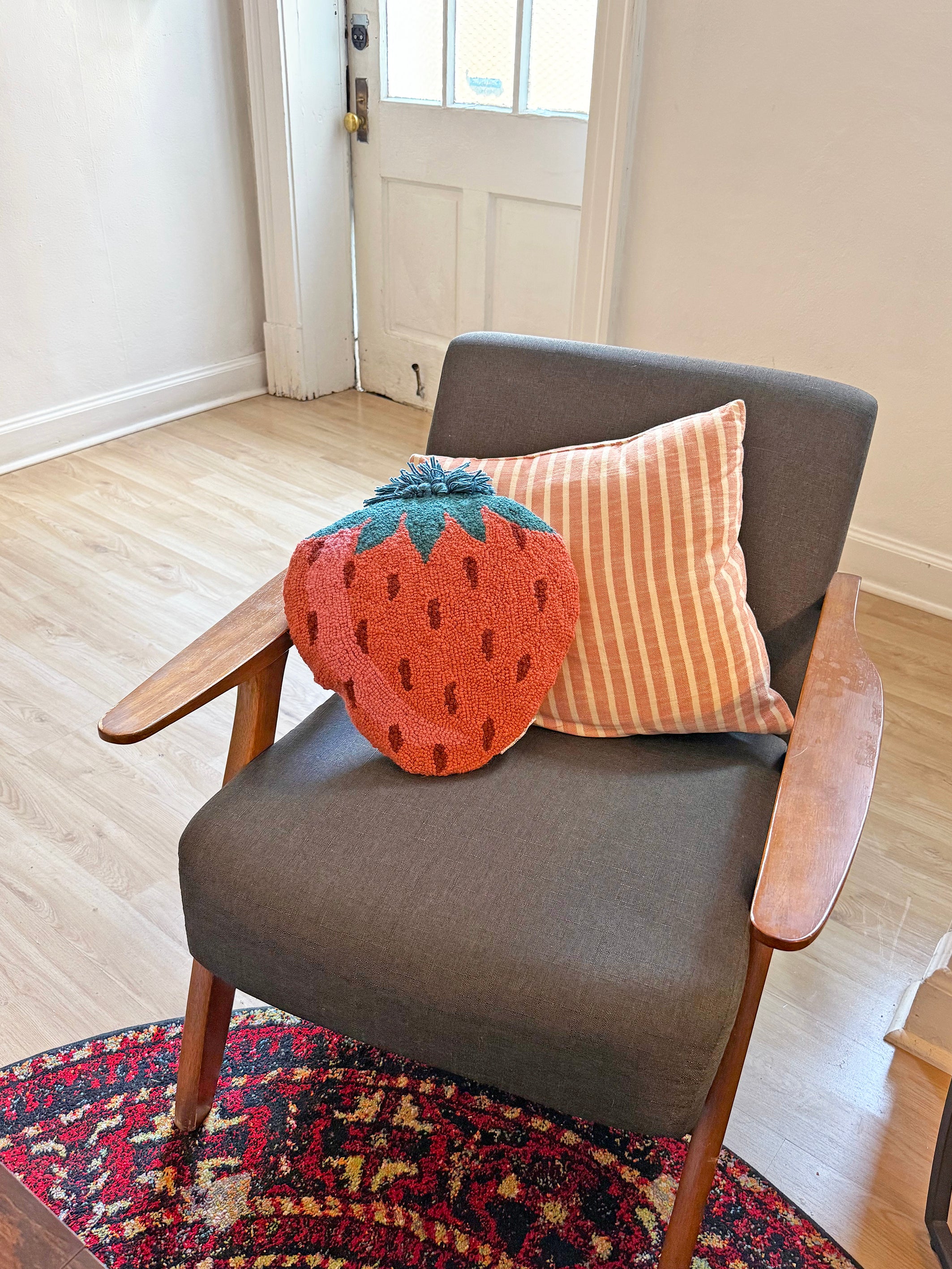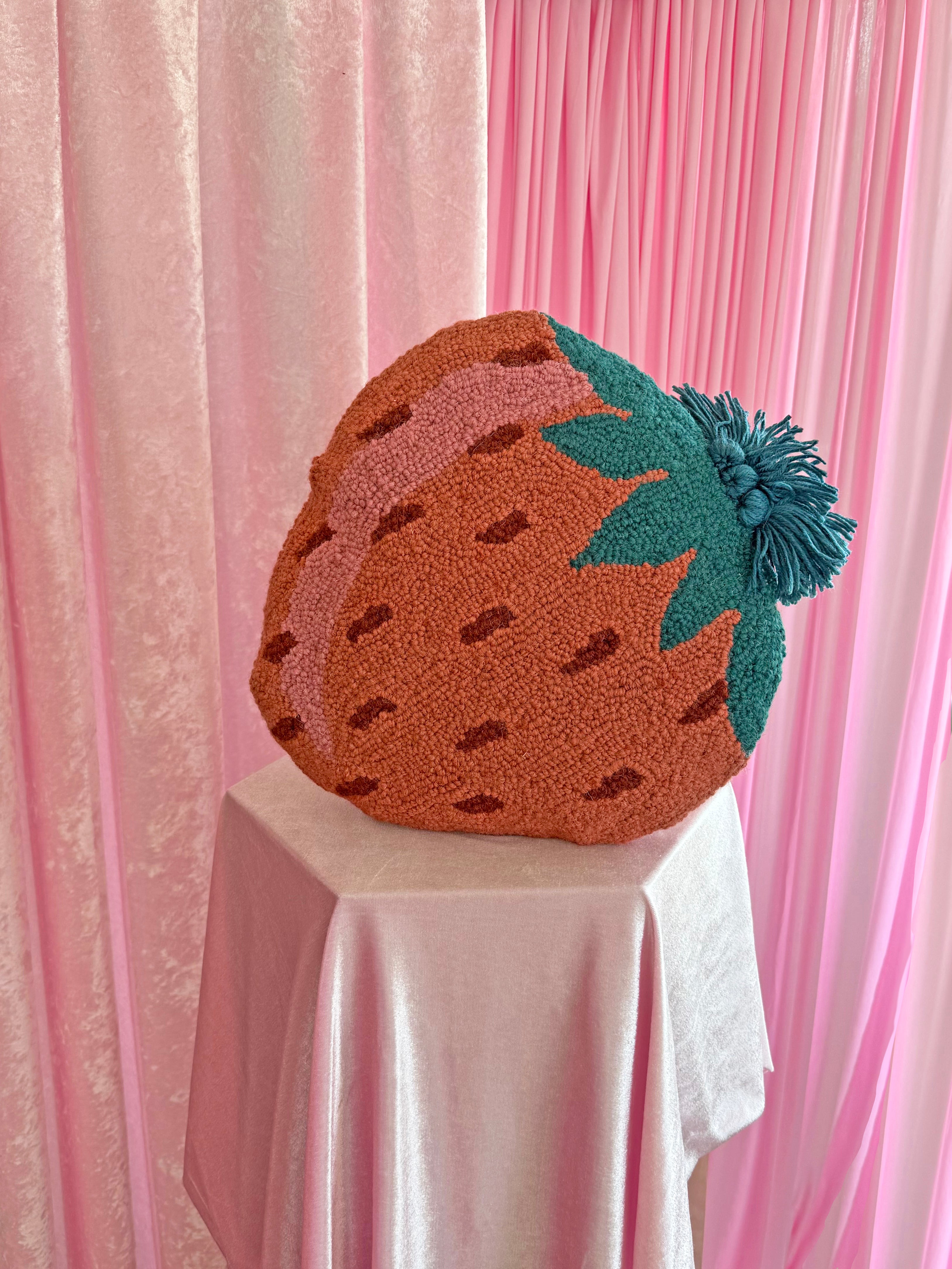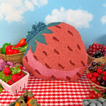 Your couch called, it needs this pillow stat!! This high quality throw pillow is shaped like a cute 'lil red strawberry with green leaves and blue tassels on the top. Delish!