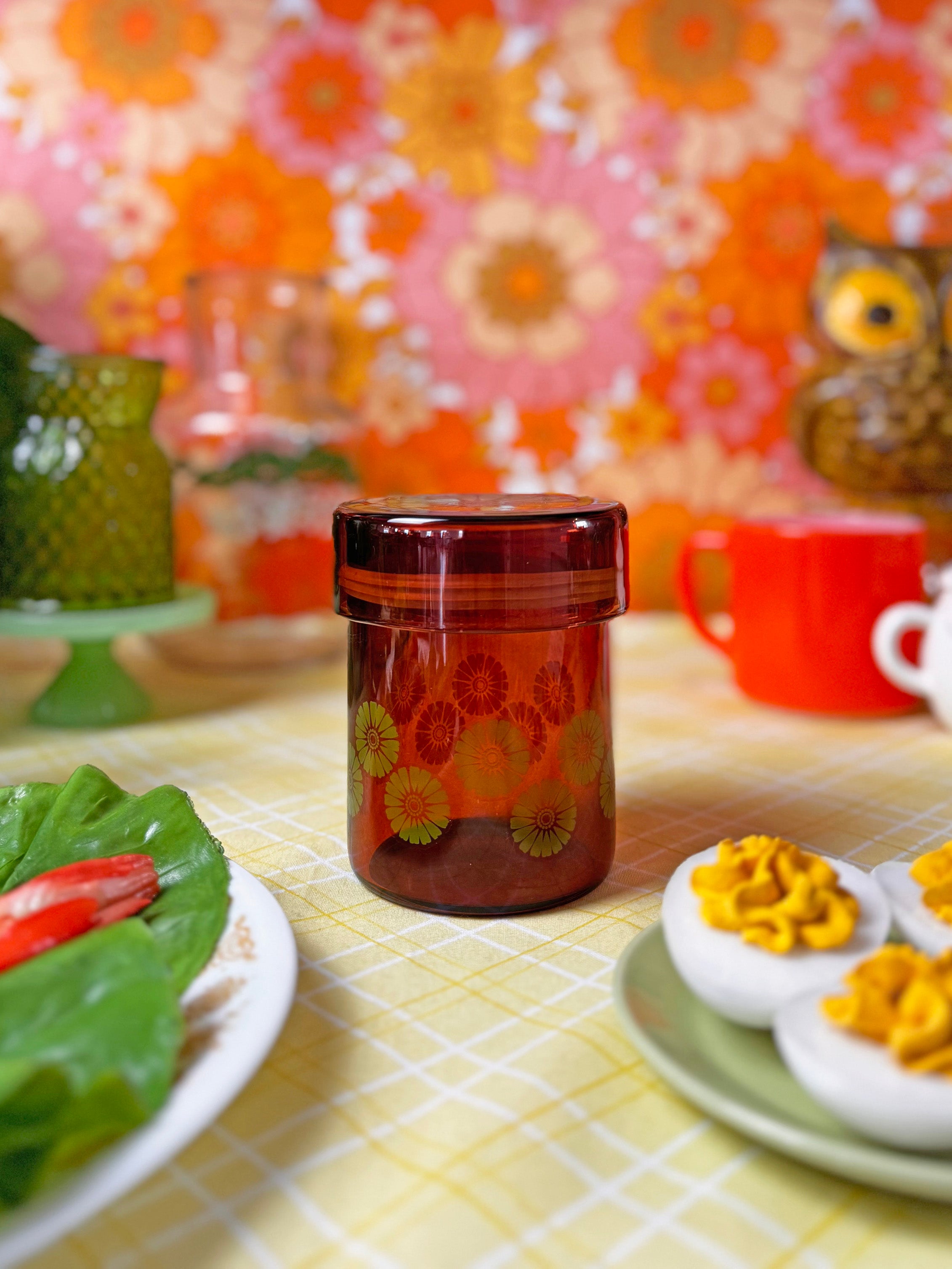 Looking for the perfect place to stash your goods? The timeless design of this stash jar is too cute to pass up. Made from amber glass with our retro sunflower print and a glass top with rubber seal that keeps your stash fresh!