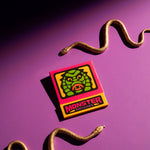 This spooky matchbook is straight from the swamp! The front features a menacing swamp creature, and the back reveals the view from behind. Open the matchbook to uncover its eerie webbed hand hovering ominously above 10 yellow-tipped matches - each one covered front to back in monster-inspired illustrations! All artwork by the talented Dustin Williams.