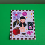 This sticker reads "Team Edward" and features a cutie little vampire surrounded by references to one of the greatest movies of all time!