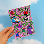 5" x 7" glossy vinyl sticker sheet with 14 stickers in varying sizes.