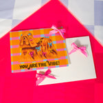 Have you ever seen anything cuter than this coquette pup with bows all over her hair? Probably not! Tell your people they are the vibe with this cute doggy card! Perfect for birthdays or just because!