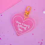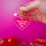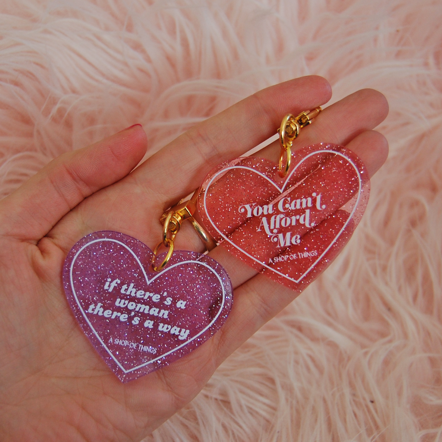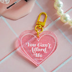 This my second “You can’t afford me” keychain, after several months and one too many drops I had to replace it. I love it so much, my keys were really missing something with out it! It’s so pretty in person