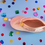 She's pirouetting her way into our hearts! Conveniently hold small items like cash, cards, lip gloss, or whatever else fits! Cute AND functional! With a ribbon loop on the heel, you can easily attach her to your purse, backpack, dance bag, etc.