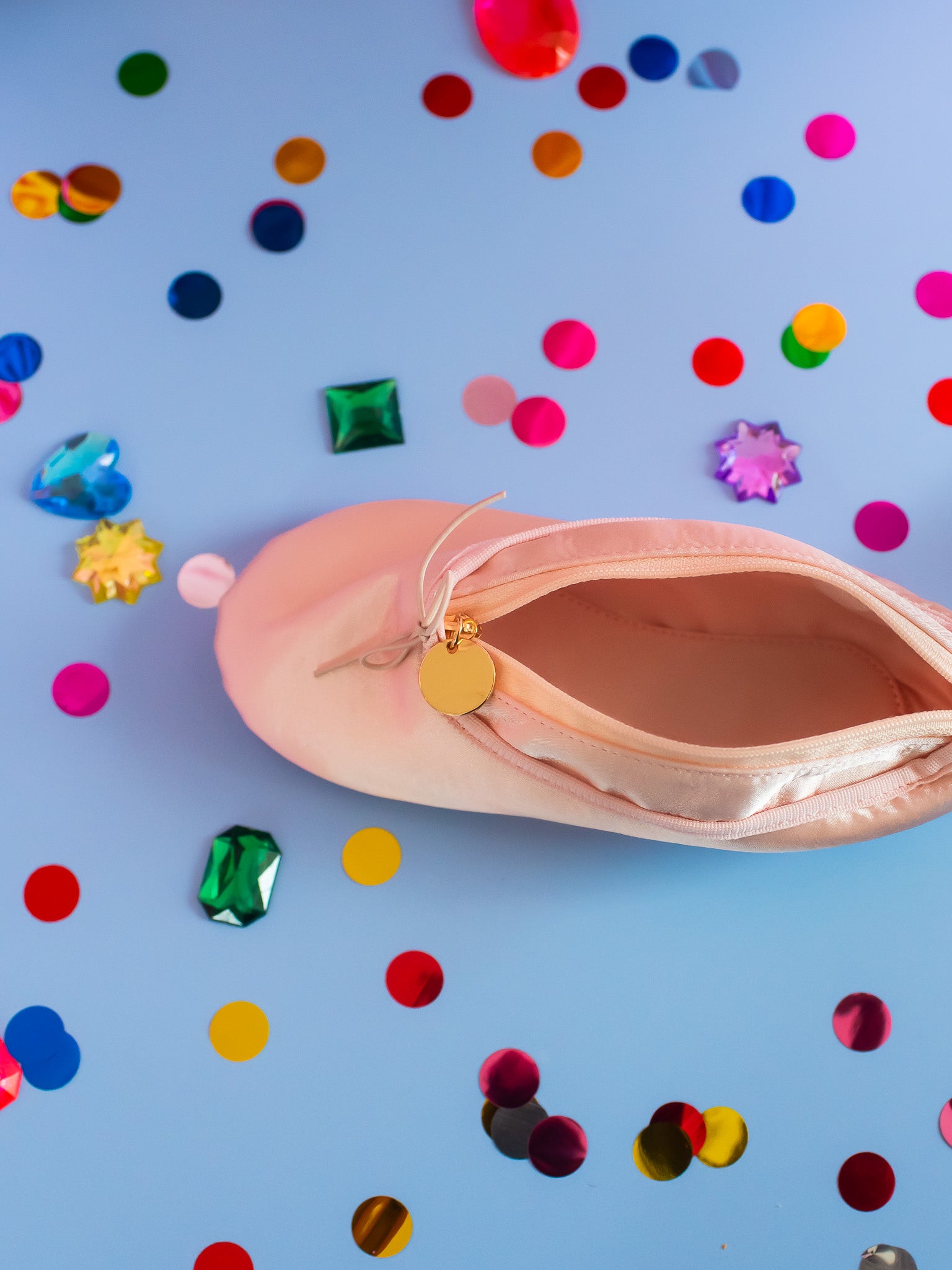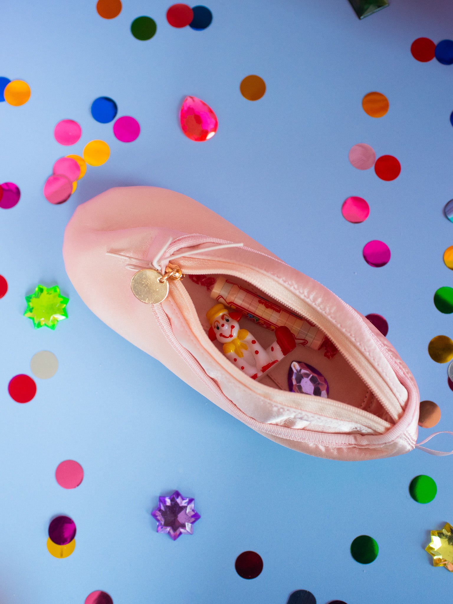 Shaped like the daintiest pink ballet slipper you've ever seen, this pouch is a best seller in our IRL stores! <3