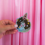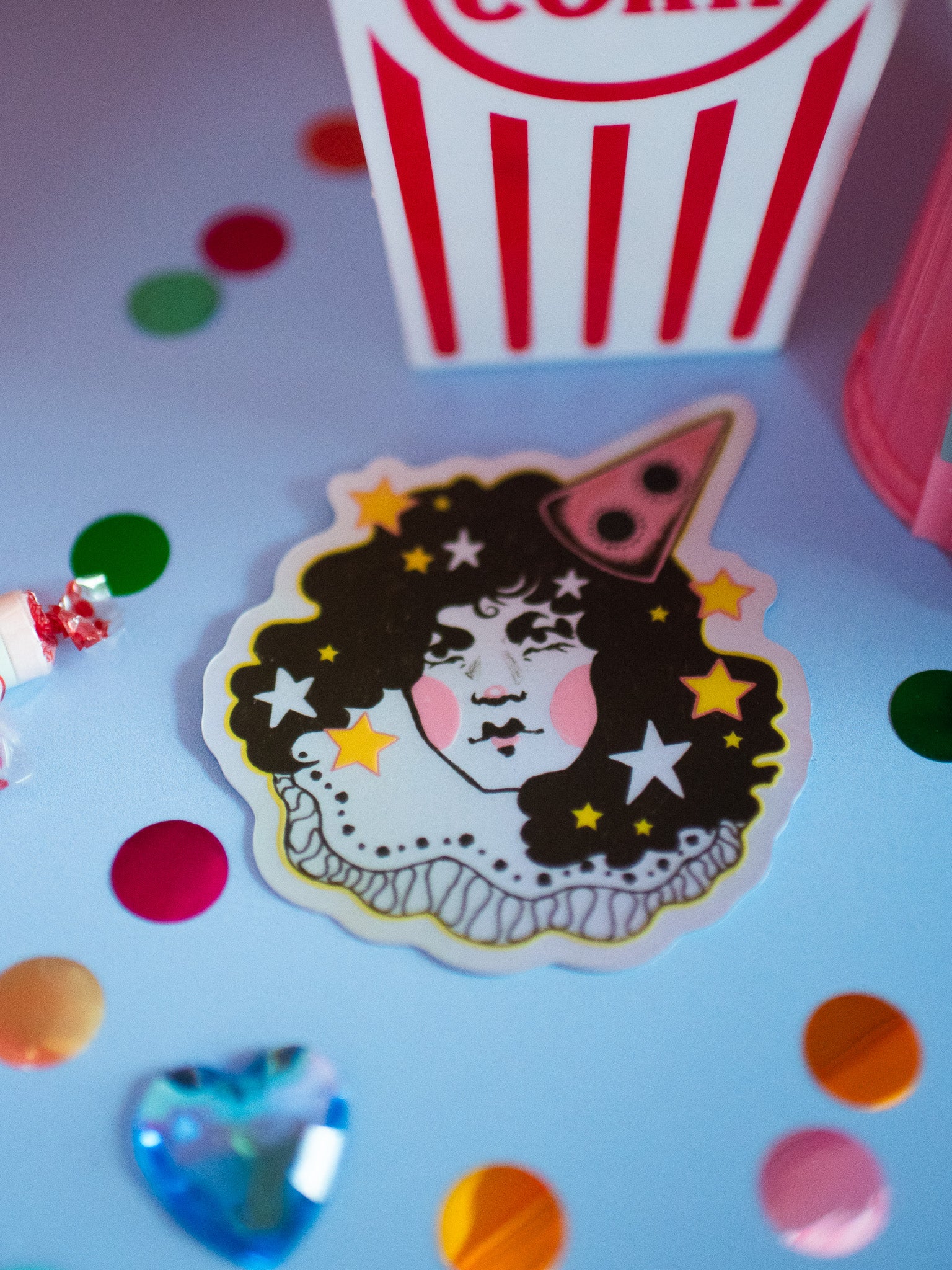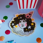 This sticker features a fabulous illustration of a glam rock inspired clown on a holographic background! Perfect for whatever you wanna stick it on- water bottles, tumblers, laptops, lockets, diaries, cars, helmets, bikes, skateboards, etc!