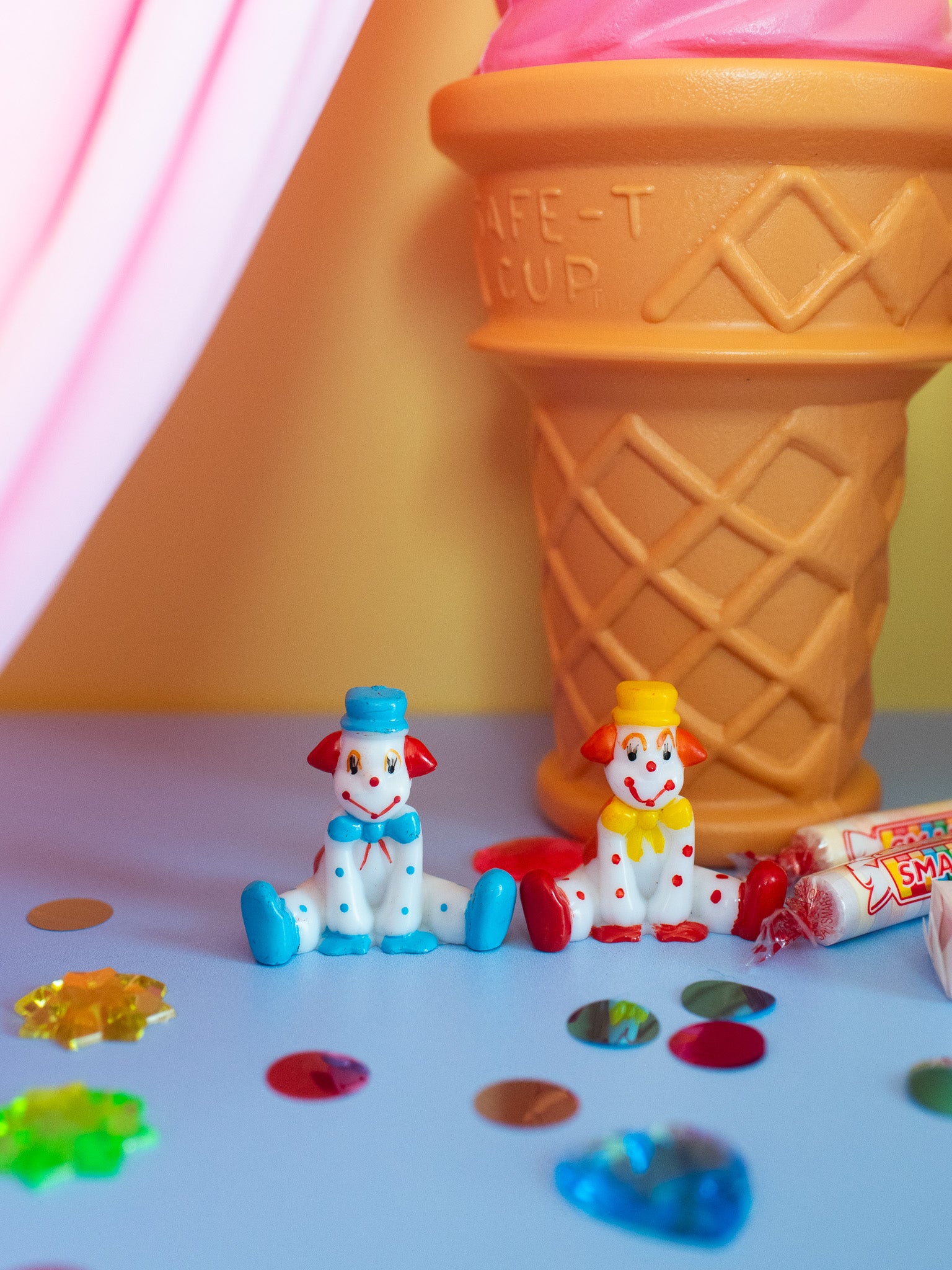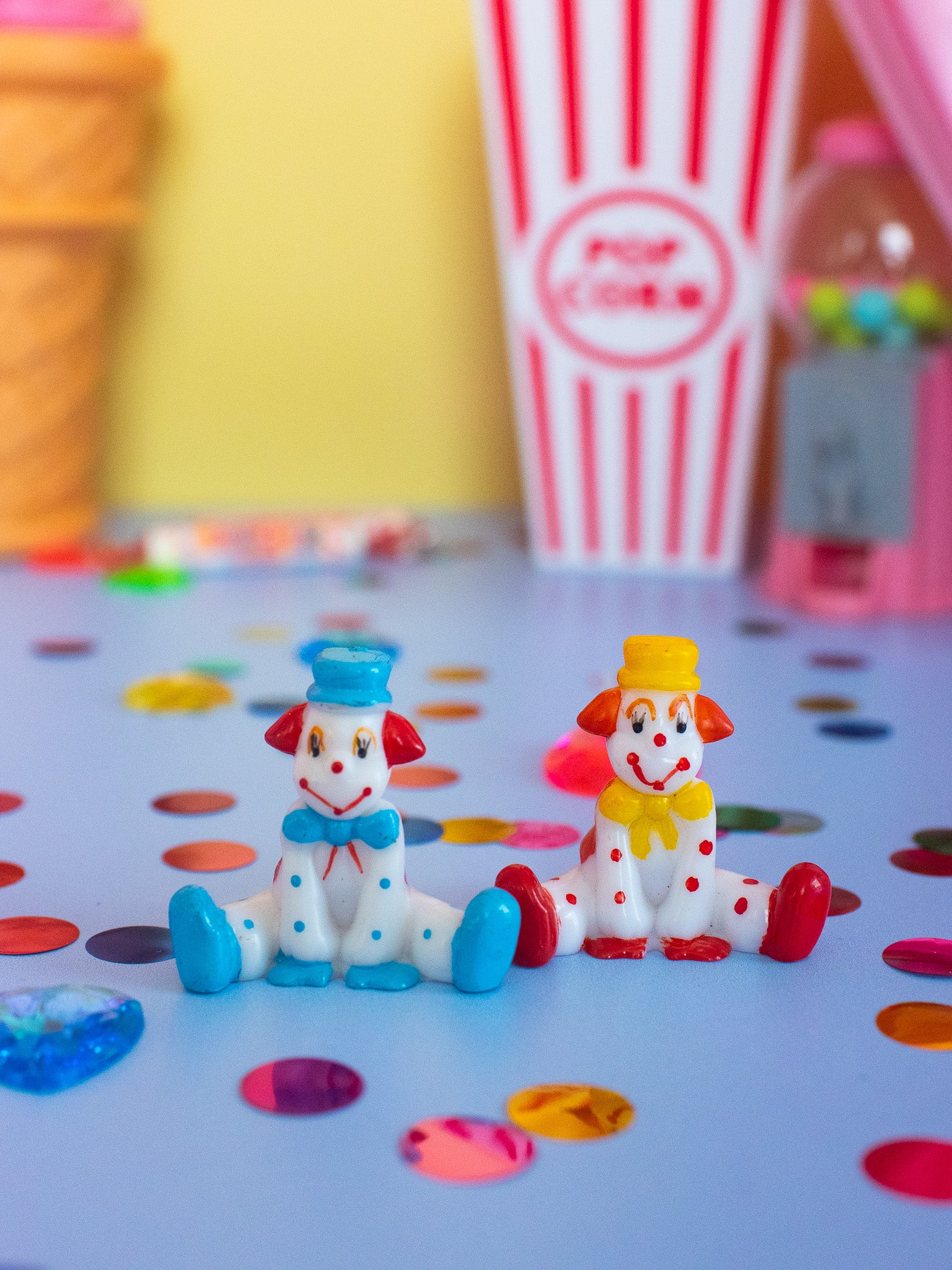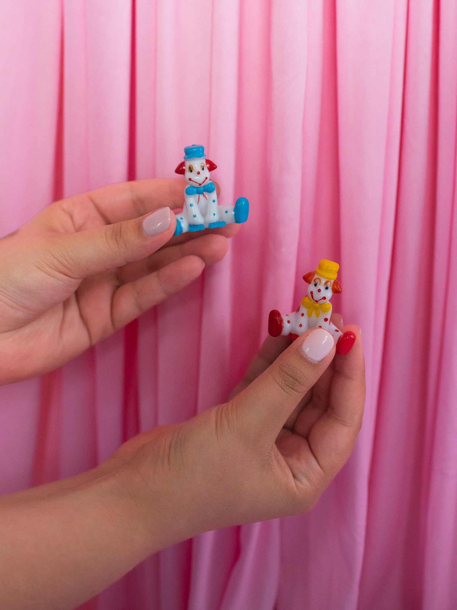 These super cute retro style mini clowns are up for adoption and want to join your circus!Â