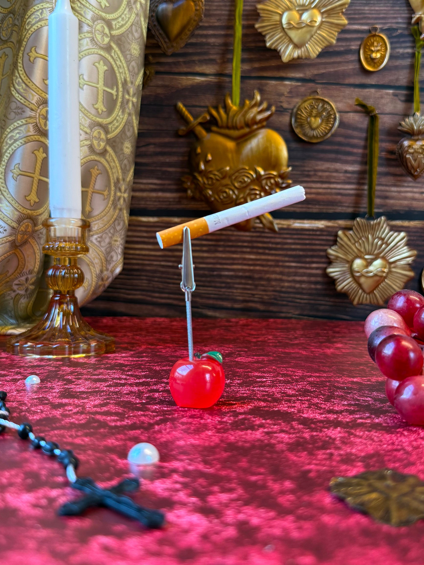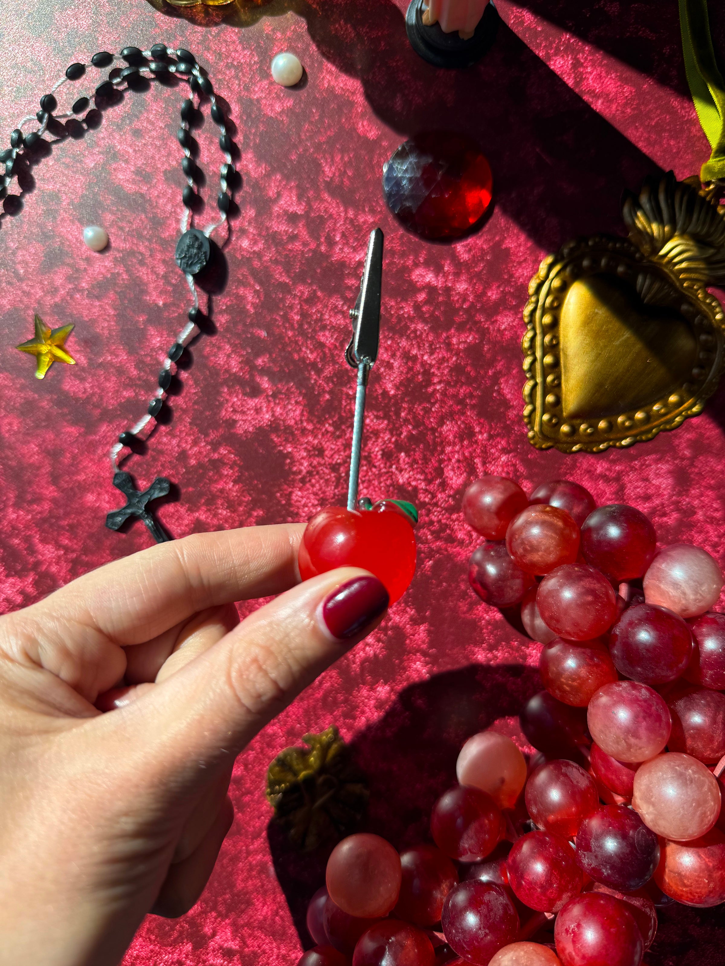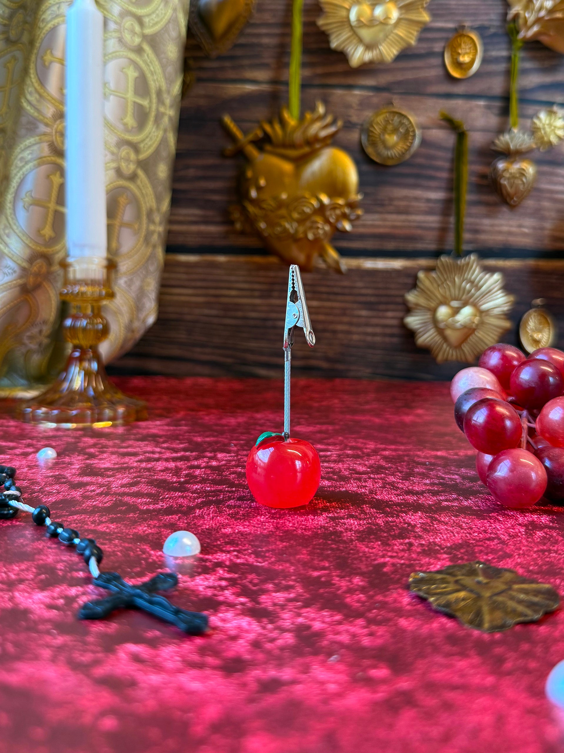 The cutest clip is here! A handy dandy clip sits atop this resin apple. Great to use as a photo clip, for incense, or for a j!