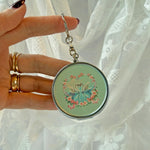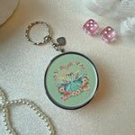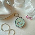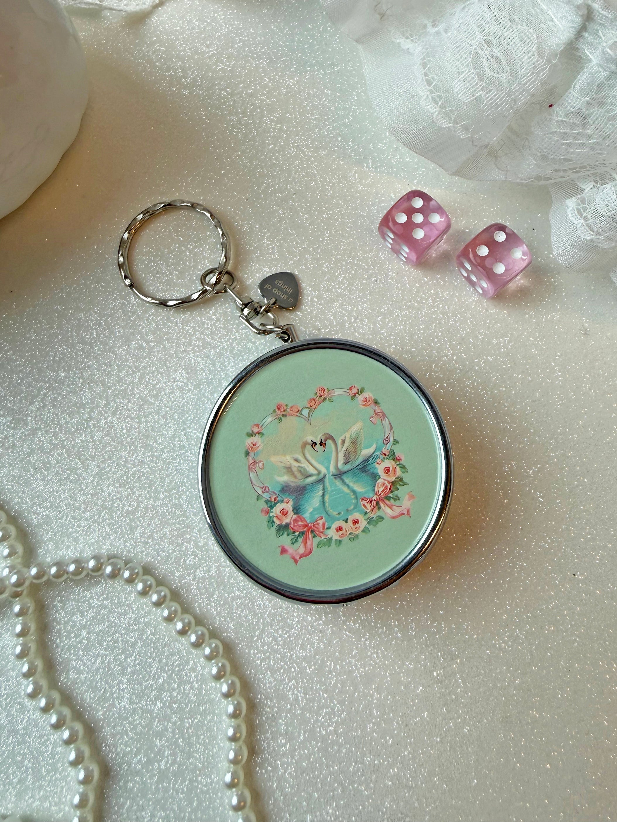 This beautiful design is serving Swan Lake vibes! Pop it open to reveal a cute little built-in cig rest - adorable!! Featuring two swans in a darling floral heart, it's sure to look fabulous on any keychain or bag! Comes on a split-ring keychain for easy attachment.